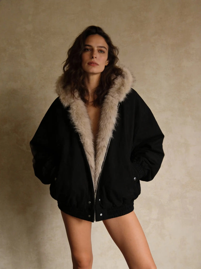 Conçu pour celles qui refusent de sacrifier le style au profit de la chaleur, ce blouson réinvente l'aviateur classique avec une touche oversize contemporaine.