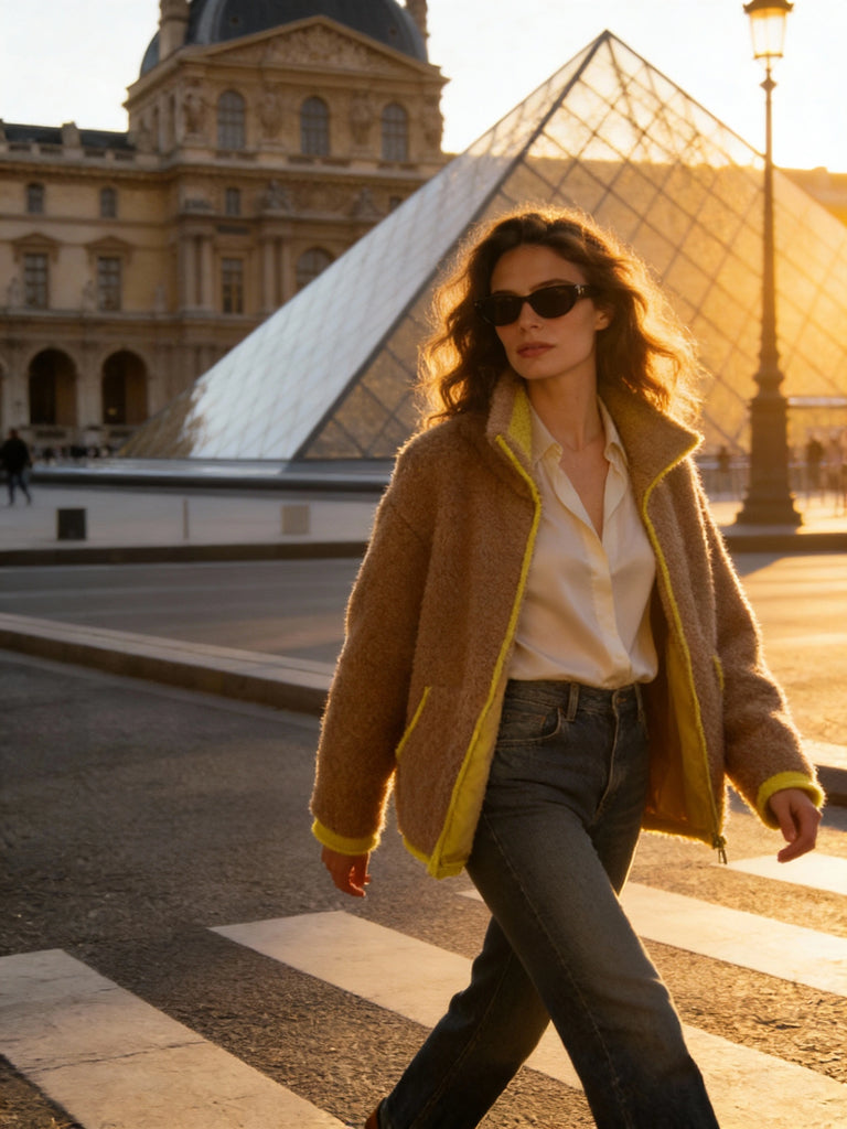 - Coupe Moderne : Une silhouette courte (cropped) et décontractée qui se marie parfaitement avec un jean taille haute ou un pantalon large.